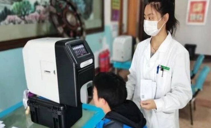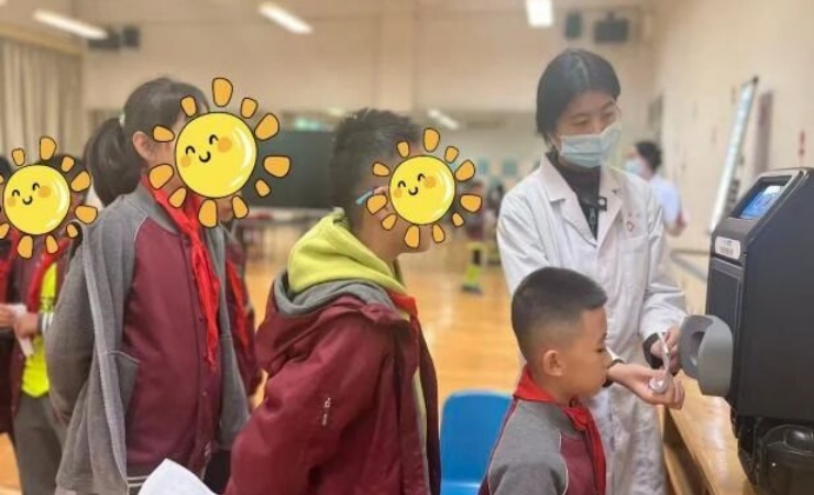 本次筛查打破传统单一检测模式,打造“筛查+科普+档案+随访”四维服务体系。医院组建由眼科主任医师领衔的“明眸侦探团”,携带专业视力表、电脑验光仪、色觉检查本等精准检测设备进驻校园,严格遵循《儿童青少年视力检查规范》,为学生逐一开展眼位、眼外观、裸眼视力检测、矫正视力核查、屈光度筛查及色觉等核心项目,同步采集学生用眼习惯、户外活动时长、家族近视史等关键信息,精准排查近视、远视、散光、斜视、屈光不正等眼部问题。筛查过程中,医护人员耐心引导学生规范配合,细致记录每一项视力数据,为全校学生建立专属初步视力健康档案,全面、清晰掌握学生视力发育动态。